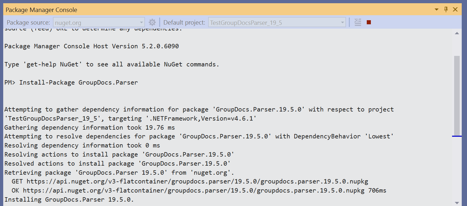 You can follow the steps below to reference GroupDocs.Parser for .NET using the Package Manager Console: