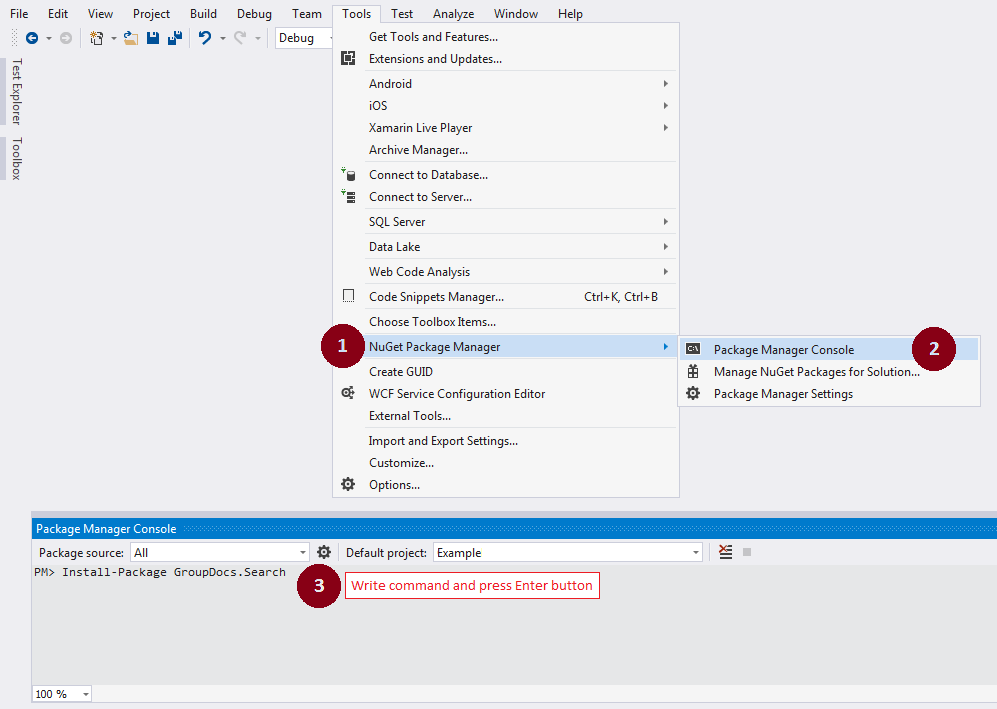 You can follow the steps below to reference GroupDocs.Search for .NET using the Package Manager Console:
